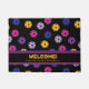 Cor-de-rosa-neon, amarelo e roxo no padrão preto de pickleball, texto personalizado legal Doormat. Perfeito como presente para o jogador de picleball. Texto personalizável.