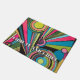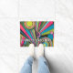 Inject electrifying energy into your space with this vibrant design from the "Radio Waves and Sunrays Art Deco Collection." This isn't your traditional roaring twenties style; it's a bold, modern "Neo-Deco" interpretation. The design features a dynamic explosion of geometric forms, including radiating sunray stripes and hypnotic concentric circles that resemble broadcasting radio signals. The vivid neon color palette of hot pink, electric blue, lime green, and bright yellow creates a high-contrast pop against the stark black background. It's a striking, eye-catching pattern perfect for making a modern statement with a retro twist.