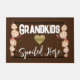 Netos mimados aqui em casa não é uma casa, é um sentimento. Crie o ambiente perfeito antes mesmo de entrar em seu lar com um tapete personalizado. Feito de borracha antiderrapante, este é resistente a desbotamentos, mofo, rachaduras e pode ser limpado facilmente com uma mangueira. Este belo tapete de chão é uma excelente adição a qualquer casa.