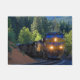 Uma fotografia de um trem do início da noite na garganta do Rio Sacramento.