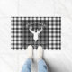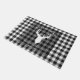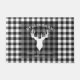 Nome da família, localização e ano estabelecidos de Gingham xadrez branca preta com silhueta de cabeça de cervo