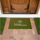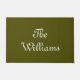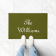 Porta do sobrenome da família de Casais de script personalizado verde-oliva-chic. Texto branco personalizável, fundo verde verde claro e claro.