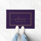 Elegante, bem-vindo, Doormat com um guião dourado sobre fundo roxo. Personalize com seu nome de família ou texto.