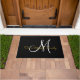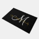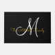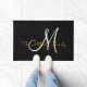 Um monograma branco de ouro escrito moderno em uma grande porta preta, para sua entrada.