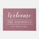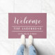 A porta personalizada Elegante e eterno apresenta "Bem-vindo" no script de caligrafia escrevendo com o sobrenome da sua família e o endereço de rua da sua casa personalizado em branco com sotaques simples de faixa. Nota, o rosa empoeirado / fundo cor-de-rosa mauve e cores de texto branco podem ser modificados para coordenar com a sua varanda ou decoração de entrada.