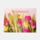 Personalize este na moda e a design de Tulips Cor-de-Rosa e Amarelo com seu Nome da Família (ou Monograma) e Mensagem de "Bem-vindo". Faz um presente de excelente. Texto cor-de-rosa e branco.