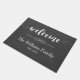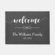 Esteira bem-vinda com um fundo do quadro, uma pia batismal branca bonito da caligrafia, e seus nome e ano de família estabelecidos.