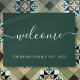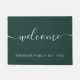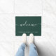 Capacho personalizado com o nome da família com data de estabelecimento em texto branco clássico sobre fundo verde esmeralda com a mensagem "bem-vindo" em texto cursivo branco elegante. Personalize com seus detalhes e escolha a cor de sua preferência. Desenhado por Thisisnotme©