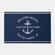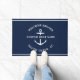 Porta do barco náutico em azul marinho lendo "bem-vindo a bordo", assim como seu nome e localização personalizados do barco.
