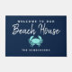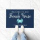 Decorre a varanda ou o pátio com esta Doormat do Caranguejo Azul Náutico da Modern Beach House. Este design moderno tem um fundo azul-marinho escuro e caranguejo. A frase é "bem-vindos à nossa casa de praia" em letras de caligrafia branca, escrita violenta. Seu sobrenome de família personalizado está na área inferior.