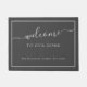 Porta do Nome do Monograma Personalizado Mínimo Moderno do Quic. "Bem-vindos à nossa casa" cinza e tapete branco de porta. Presente perfeito para decoração, aquecimento de casa, ou presente para recém-casados. Personalize com seu nome monograma, nome da família e data.