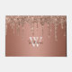 Aproveite este design elegante com seu nome e monograma ou inicial com gotas de glitter de rosa de ouro quic e cintilante sobre um fundo de rosa de ouro.