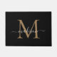 Porta do Nome do Script Monograma Personalizado Elegante Preto e Dourado