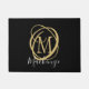 Bem-vindos convidados para sua casa com um elegante tapete de porta monograma, na moda, personalizado com um monograma decorativo ou inicial, com um nome na sua escolha de estilos e cores de fonte de texto, bem como o monograma e a cor de fundo (mostrados com um monograma dourado, um guião manuscrito chic para o nome em branco sobre fundo preto). ALTERAÇÕES: Faça alterações na EDIT. Faz um bem de casa ou um presente de férias. ASSISTÊNCIA: Para obter ajuda com a modificação ou personalização do design, alteração de cor, redimensionamento, transferência do design para outro produto ou, se você quiser coordenar itens, entre em contato com o designer ANTES DE ENCOMENDAR através da guia MENSAGEM de bate-papo Zazzle ou envie um email para makeitaboutyoustore@gmail.com.