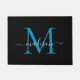 Elegante Oceano Negro Azul Brilho Azul Monograma Personalizado Nome do Script Porta
