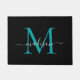 Porta do Nome do Script do Monograma Personalizado Verde-Teal Preto Elegante