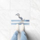 Esta imagem apresenta um nome de barco e ancora em um fundo listrado azul claro e branco.