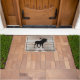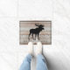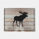 Casaco de madeira russa andando de alce, porta-se da sua cabana, casa do lago, casa pequena ou qualquer floresta rústica, natureza selvagem ou configuração de país.