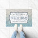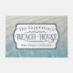 Esta porta apresenta uma praia de areia branca com água oceânica atravessando o fundo. Um quadro de estilo vintage está no centro com um nome de família de exemplo e o título da Casa da Praia. Você pode personalizar a porta para incluir seu próprio nome personalizado ou texto.