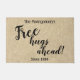 Bem-vindos aos seus convidados com esta divertida escrita tipografia, o tapete de porta rustica design "Abraços livres à frente" personalizado com um nome. Preencha o campo de texto com um nome de família, remova o nome ou clique em personalizar para selecionar um estilo de fonte, tamanho e cor preferidos.