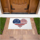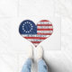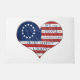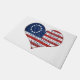 Colorida bandeira vermelha, branca e azul original de 13 estados Betsy Ross American em forma de coração, com a primeira linha do Preâmbulo da Constituição dos Estados Unidos da América.