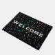 Notas da música do arco-íris na esteira bem-vinda preta. Notas musicais roxas do rosa e da lavanda do ouro do verde azul polvilhadas em uma esteira preta com o texto bem-vindo customizável. Aperfeiçoe para fora de sua estúdio ou casa e um grande presente para seu músico ou melómano favorito. O texto pode permanecer como é ou para o mudar a o que quer que você prefere.