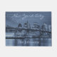 Este tapete de boas-vindas apresenta a linha do horizonte Nova Iorque em azul ártico. Com "Nova Iorque" escrito em fonte azul incrível, personalize seu nome na parte inferior. Compre a porta da NYC hoje!