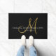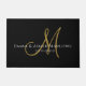 Um script de ouro moderno manuscrito inicial, nome de monograma branco em preto, e data estabelecida, grande porta para sua entrada.