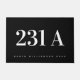 Número de Endereço Personalizado Porta Preta e Branca Moderna. O na moda moderno design apresenta números personalizáveis e texto de endereço. Mostrado em texto branco em preto - todas as cores são personalizáveis. Clique no botão Personalizar e personalize ainda mais para escolher qualquer cor de fundo, alterar fontes, adicionar seu próprio texto e até fotos a cores de cheio para criar uma única de um tipo de design. Convidamos você a visitar nossa loja Zazzle, GJ Design Co, para ver produtos correspondentes e muito mais.