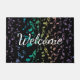 O arco-íris de explosão nota a esteira bem-vinda do Doormat da música. As notas musicais roxas do rosa e da lavanda do ouro do verde azul explodem para fora do centro em uma esteira preta com texto bem-vindo customizável. Aperfeiçoe para fora de sua estúdio ou casa e um grande presente para seu músico ou melómano favorito. O texto pode permanecer como é ou para o mudar a o que quer que você prefere.