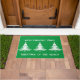 Árvores de inverno de neve em uma porta branca com seu endereço. Ajude esses drivers a soltar o pacote na varanda correta. Pegue um para seus vizinhos também! Bem-vindos aos seus convidados com Saudações da Estação.