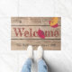 Bem-vindos aos seus convidados com este fundo de madeira rústico, e folhas de outono com tipografia de boas-vindas e texto personalizado. Personalize o texto, remova o texto ou clique em personalizar para selecionar um estilo de fonte, tamanho e cor desejados.