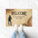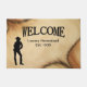 Um tapete de boas-vindas de vaquinha com texto personalizado para o seu próprio ditado e/ou data.