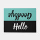 Um simples tapete de saudação e adeus, preto e branco. Quando os visitantes vierem, verão olá e, quando saírem, verão adeus.