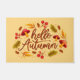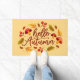 Saudações ao outono de seus convidados com este tapete de outono na moda que apresenta folhas em cores do outono e cogumelos no fundo cor do outono antes que eles entrem em sua casa ou escritório. Seria uma bonito adição à decoração de férias ou um belo presente para a sua família ou amigos.
