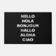 Olá em diferentes línguas, moderno Doormat elegante, preto e branco, minimalista. Texto branco totalmente personalizável. Olá Hola Bonjour Hallo Aloha Ciao