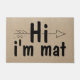 Esta porta engraçada apresenta a frase "Oi, sou Mat" em uma burlap faux rustic. A divertida e única dádiva moderna e engraçada, ou o novo dom dos donos de casa.