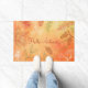Saudações aos seus convidados feliz outono com este tapete de na moda outono com folhas em cores de outono, folhas de maple e cone de pinho no fundo de cor de outono antes de entrarem em casa ou no escritório. Seria uma bonito adição à decoração de férias ou um belo presente para a sua família ou amigos.