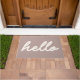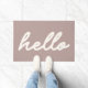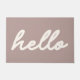 Esta porta de na moda apresenta um design moderno minimalista da palavra Hello em letras de guião em um fundo empoeirado.