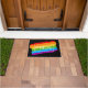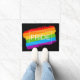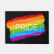 Este trabalho de arte apresenta um arco-íris colorido com a palavra Pride.