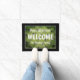 Os calçados engraçados de por favor assinam o doormat bem-vindo da família. A esteira de porta feita sob encomenda para famílias, o negócio, a empresa, a loja, a loja, o escritório, os newlyweds, o Sr. e a Sra. casal etc. adicionam sua própria mensagem do sinal de boas-vindas do divertimento, endereço, número da casa, nome de família, estabeleceram a data do ano, o monograma, o sobrenome ou citações cómicos. Ideia bonito do presente para a casa ou o housewarming novo. O modelo à moda da tipografia com cacto verde pricks a imagem da textura do fundo. Sinal do doormat de Personalizable com beira preta à moda. Criar seus próprios esteira/tapete da entrada do humor para a porta da rua, a entrada ou o salão. Decoração home customizável/decorações para sua casa luxuoso. Ideias home do presente da decoração da novidade. Disponível em pequeno e em grande/em tamanho grande.