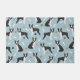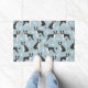 Cães bonitos de Boston Terrier com casacos pretas e brancas sentam-se e ficam espalhados por ossos de cachorro e padrões de pata.