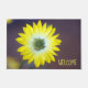 Esta porta personalizada para a entrada da casa ou do escritório apresenta uma imagem aproximada de uma floração amarela de Osteopermum, uma espécie de margarida africana. "Bem-vindo" é adicionado em letras grandes e fáceis de ler. O tapete mede 24" x 36" e tem uma frente de feltro suave e um látex não deslizante para trás. Tem também uma aresta reforçada para resistir à fadiga, é simultaneamente esfarelada e resistente a suaves, e limpa facilmente com um spray de água. Ideal para entradas cobertas, como porcos, apartamentos, escritórios, condomínios, etc. Sinta-se à vontade para entrar em contato comigo através do Zazzle se tiver perguntas sobre este tapete ou se quiser ajudar a transferir este design para outro item. Estou feliz em ajudar a garantir os ajustados design corretamente.