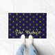 Padrão de pulgas de lis legante em cor de ouro, sobre fundo azul marinho escuro.