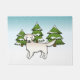 A ilustração original do desenho de Destei de um lindo cão da raça Retriever, Ouro de cor de creme inglês. O cachorro é colocado numa cena fria de inverno. No local, está nevando ao fundo e há três pés verdes atrás do cão. As árvores têm neve neles. O fundo é um gradiente azul-claro a branco que dá a esta design aquele congelando do dia frio de inverno.