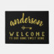 Rotulação bonito e simples do brushstroke - preto elegante e ouro - boa vinda do clássico a nossa casa doce Home com chave e seu nome de família - personalize para ajustar a posição conhecida se as letras sobrepor a chave