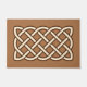 Porta em um padrão de nó contínuo, nódulo celta, retangular, simbolizando a geometria sagrada e a interconectividade de toda a vida no universo - padrão de cor creme esboçado em marrom-escuro, num fundo castanho-camelo/castanho-claro-de-café