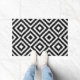 Lindo padrão mosaico de diamantes quadrados contemporâneos em preto e branco no estilo Ikat. Desenho ornamentado, elegante, sofisticado e eclético para o designer de interiores artístico sofisticado, a diva da decoração artística, a seguidora de tendências populares, amante do estilo de arte retrô vintage e do motivo geométrico digital abstrato. Disponível em uma variedade de acessórios modernos para decoração de casa e acessórios inspirados na moda para decorar o quarto principal ou das crianças, cozinha, berçário, sala de estar ou de família, refúgio de homem ou mulher, dormitório universitário, condomínio, estúdio ou apartamento, casa de praia, cabana de campo, RV ou trailer, casa de férias no lago ou rio.
