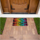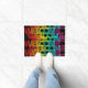 Aqui está um tapete colorido de boas-vindas em um design exclusivo colorido e abstrato com a palavra Bem-vindo em um padrão único e completo que decora a porta da frente de sua residência em estilo. A design é impressa com cuidado em um fundo preto intencionalmente.