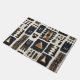 Design de pano de lama africano pintado à mão com formas geométricas arrojadas em tons sujos de preto, marrom e creme.